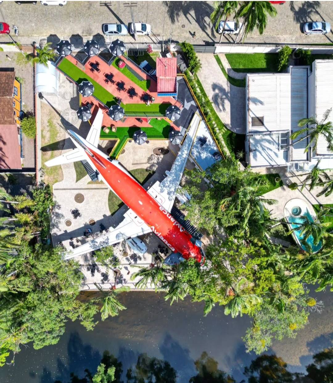 Dessa forma, a proposta do espaço não é exatamente “chegar voando”. O conceito foi pensado especialmente para aqueles que chegam por terra. O local conta com um ambiente temático e permite a entrada na aeronave, onde os visitantes podem explorar cabines e outras áreas internas que normalmente são restritas em aeroportos.