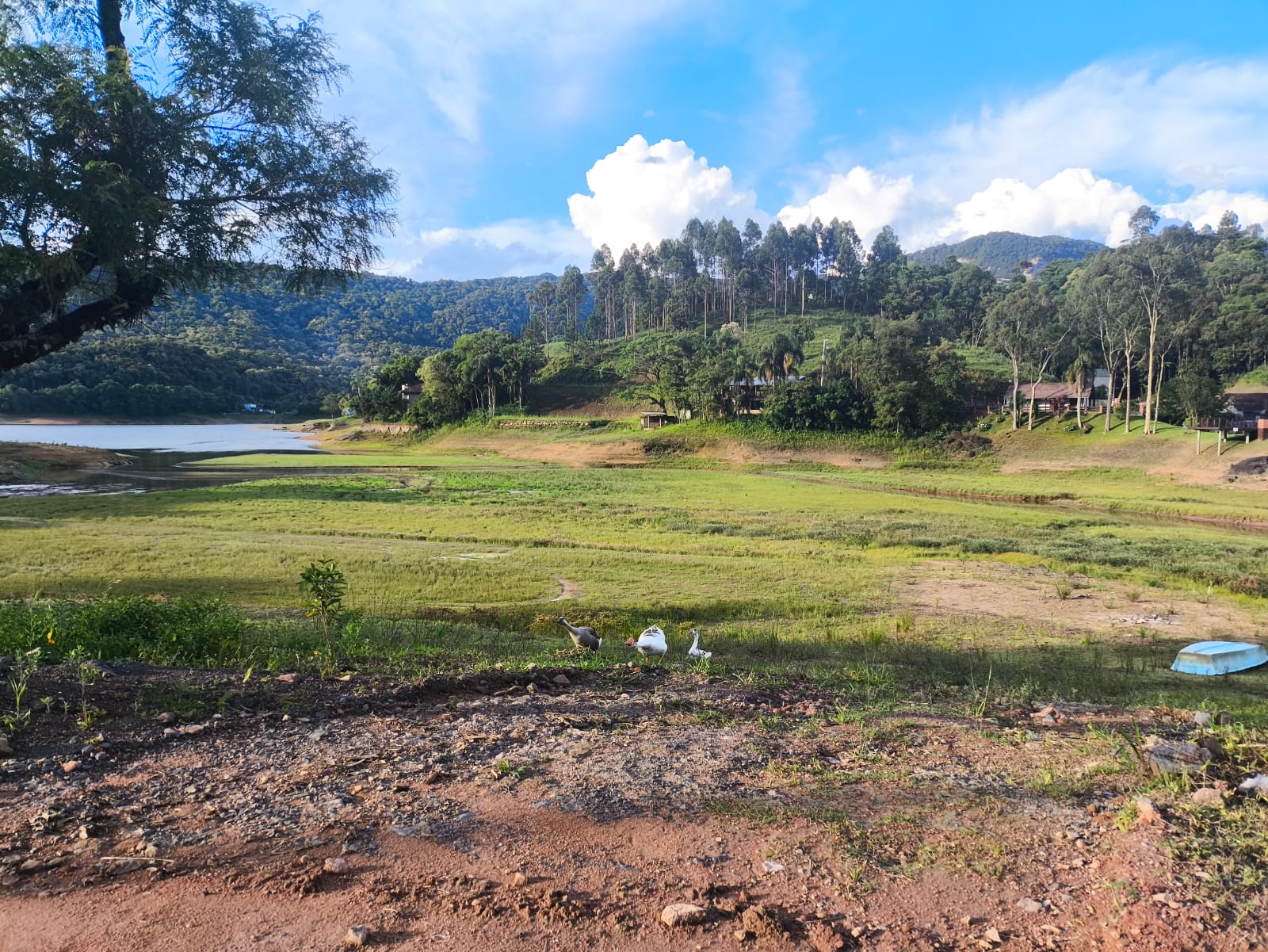 A cidade de Rio dos Cedros, localizada no Vale Europeu de Santa Catarina, enfrenta uma situação alarmante devido a uma seca histórica que afeta um de seus principais atrativos turísticos. A Represa Palmeiras, um dos cartões-postais do município, registrou o nível mais baixo de água já documentado, superando o limite legal de rebaixamento de sete metros estabelecido pela legislação ambiental. Em determinados trechos, a água praticamente desapareceu, deixando a paisagem alterada e preocupando a comunidade local.